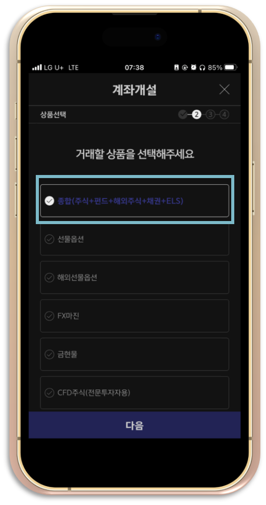 설명을 위해 "종합 계좌개설"을 선택하겠습니다.