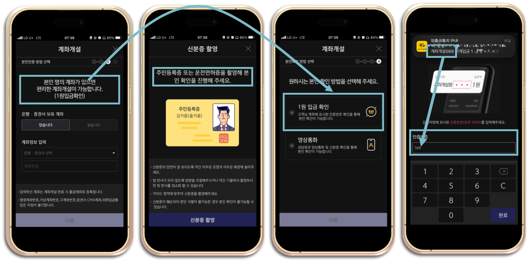 신분증 촬영과 1원 입금확인을 하는 단계입니다.