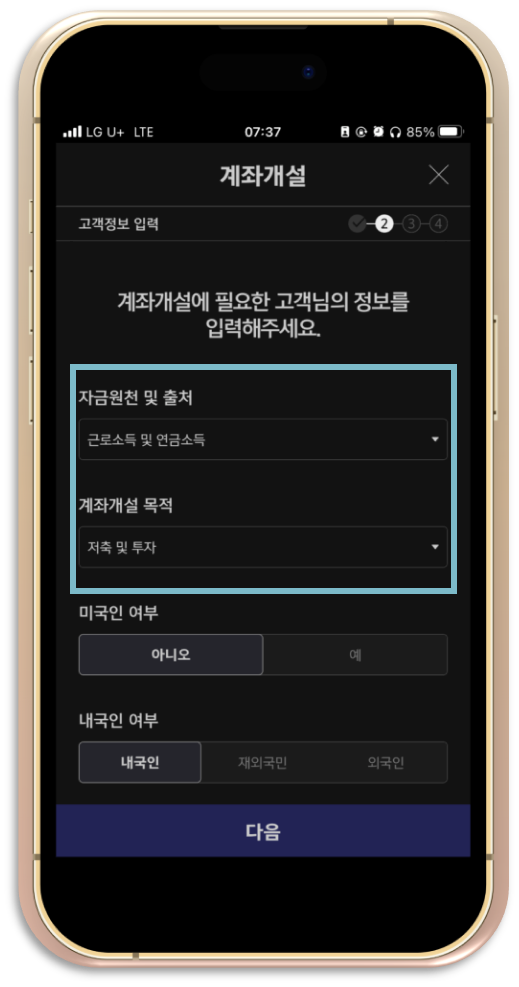 - 계좌개설 목적: 저축 및 투자