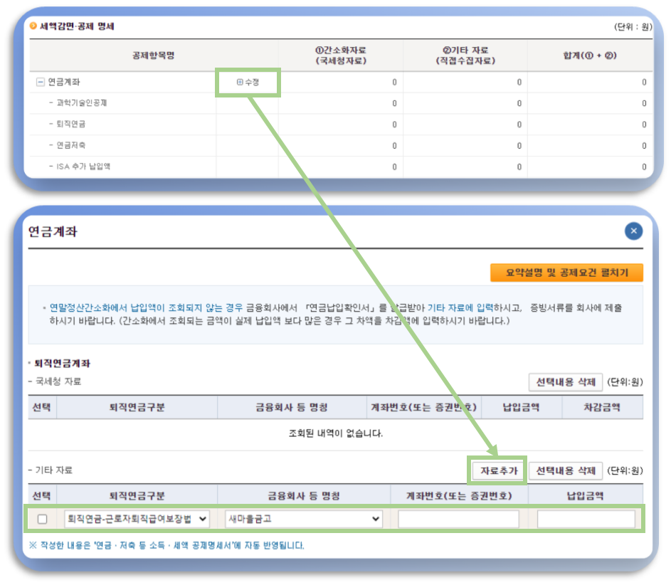 - 근로자가 간소화 자료에서 빠진 부분을 작성