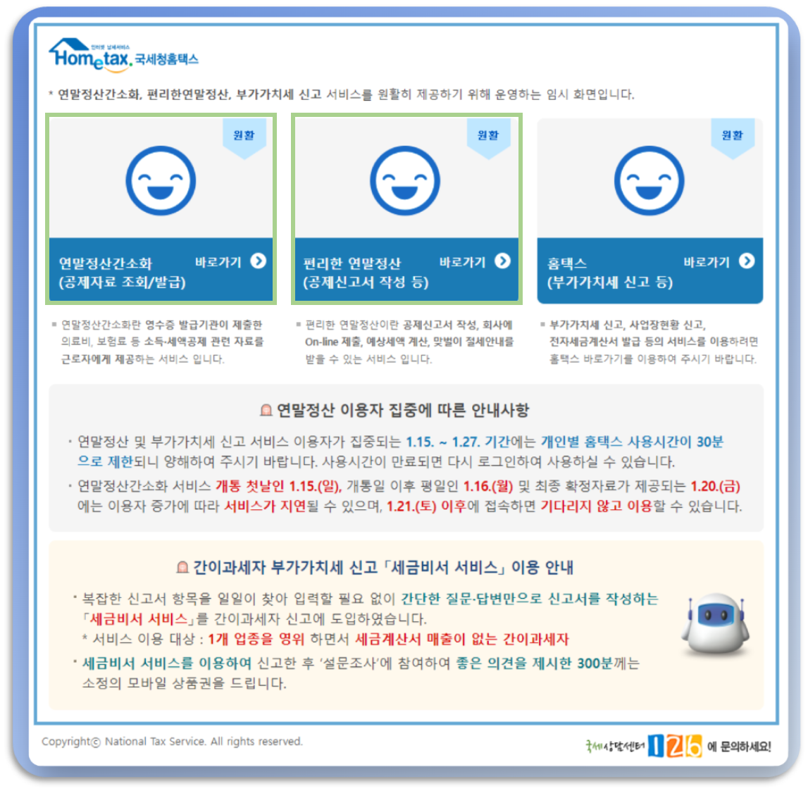 연말정산을 위해 홈텍스에 접속하면 크게 2가지 메뉴가 보입니다.