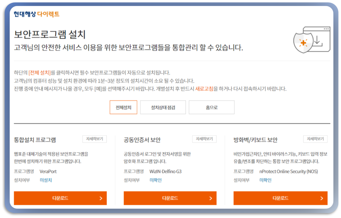 보험료 조회 시 보안 프로그램 설치 없어 편리합니다.