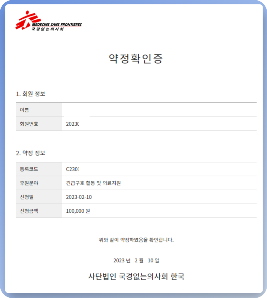 그리고 우연히 "국경없는 의사회"와 "카카오 같이가치"를 통한 후원에 대한 이야기를 듣고 함께 후원했습니다.