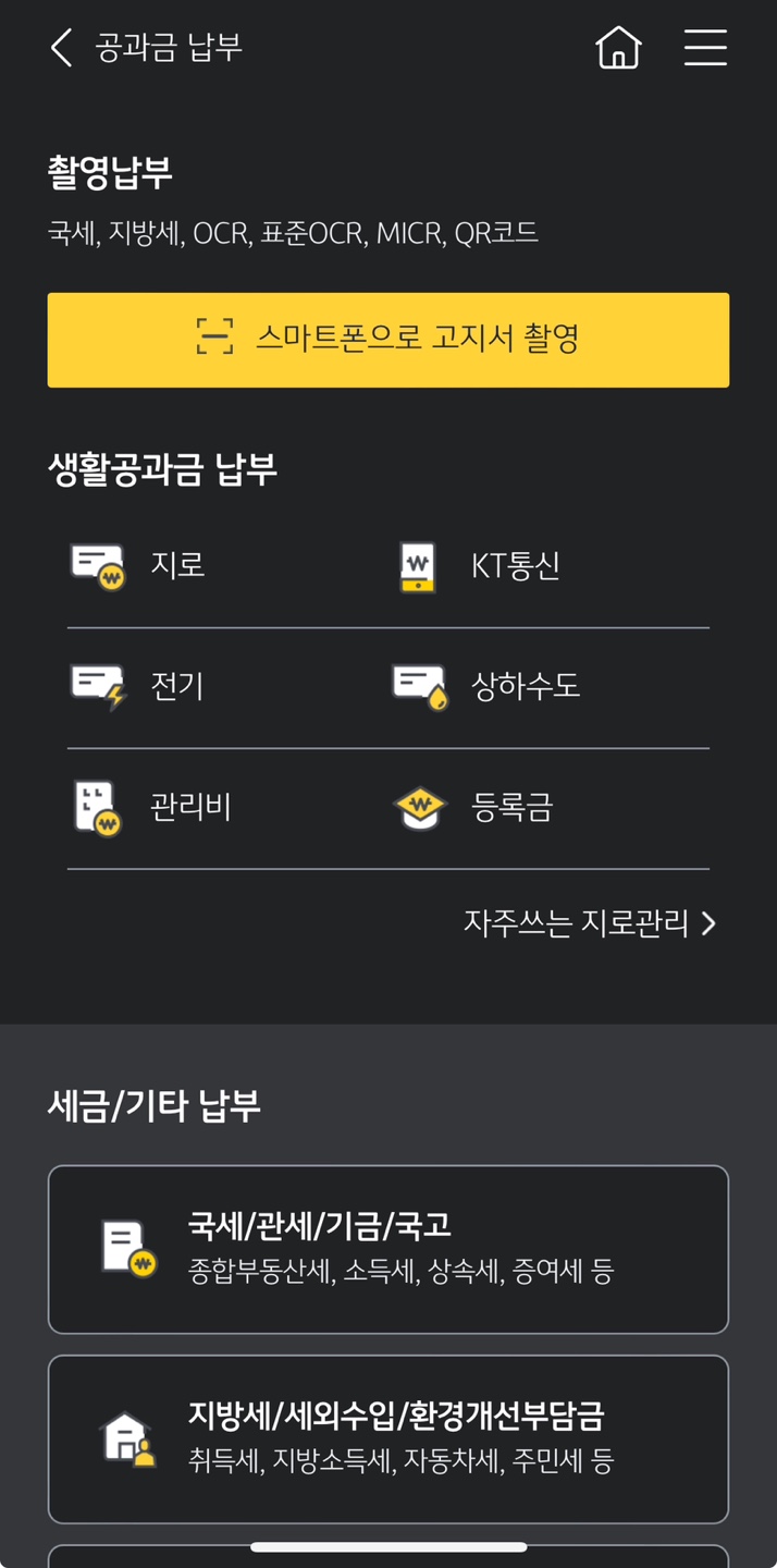 여기서 저희는 "공과금 납부하기"를 선택할 겁니다