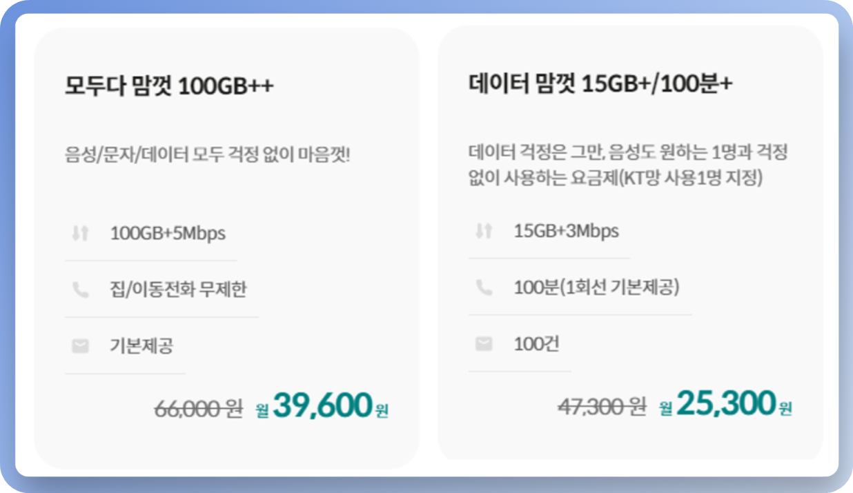 KT M 모바일의 장점은 당연히 저렴한 요금입니다. 이는 다른 알뜰 통신사에도 해당되는 점이기도 하죠.